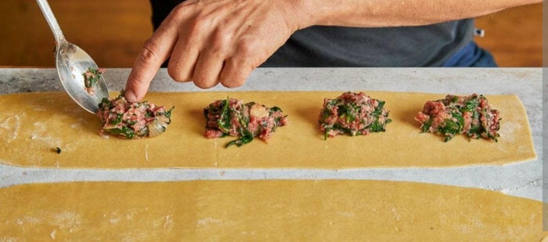 Wir schnippeln erst alle zusammen die Zutaten für die Füllung (nach einem alten Rezept eines guten, leider inzwischen verstorben, Freundes) versuchen uns im füllen und genießen zusammen unser Werk 😊